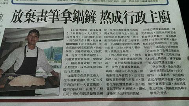 聯合報報導 - 放棄畫筆拿鍋鏟 熬成行政主廚 105/07/11